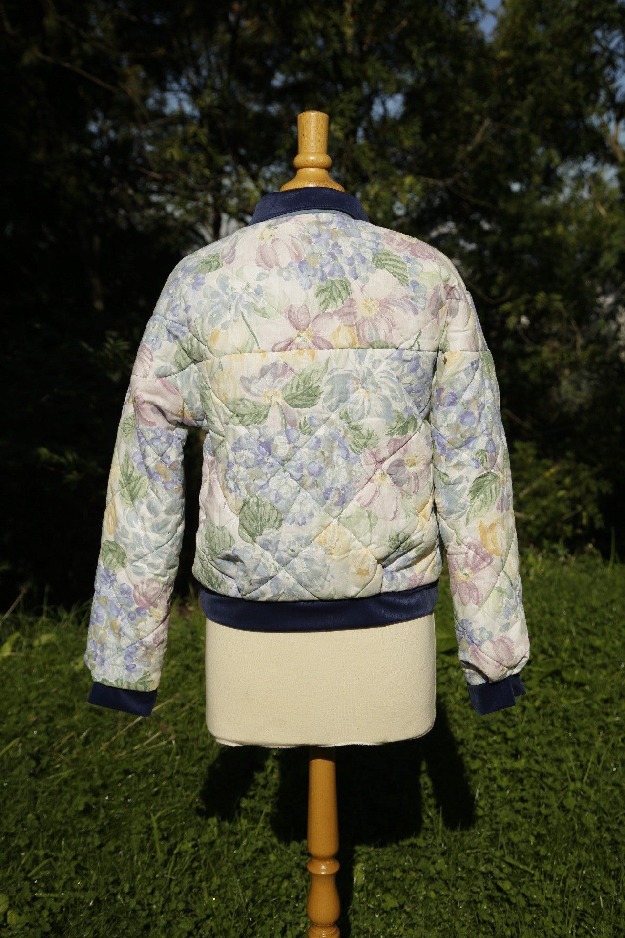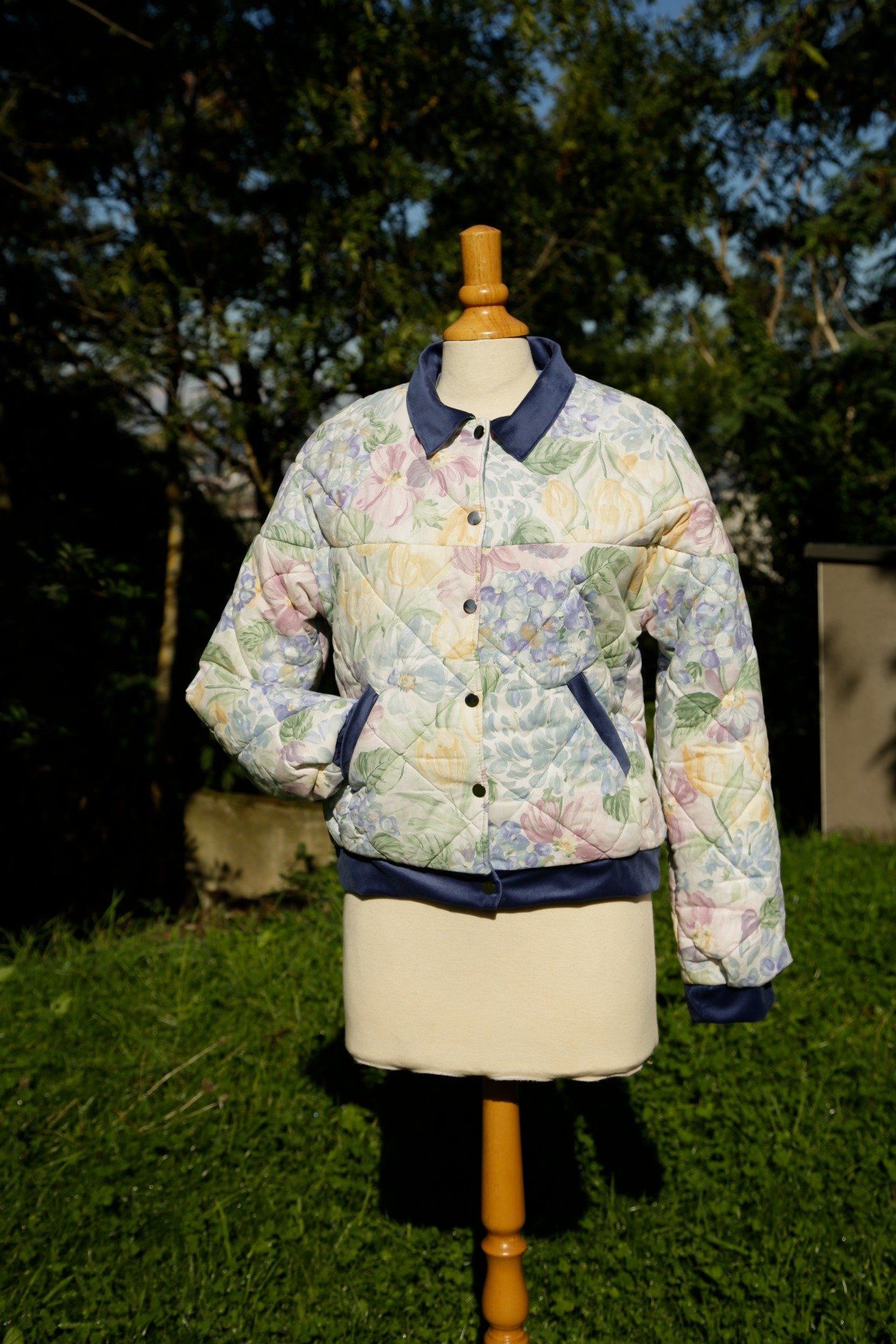 Bomber fleuri vert et jaune surcyclé à partir d'un ancien couvre lit