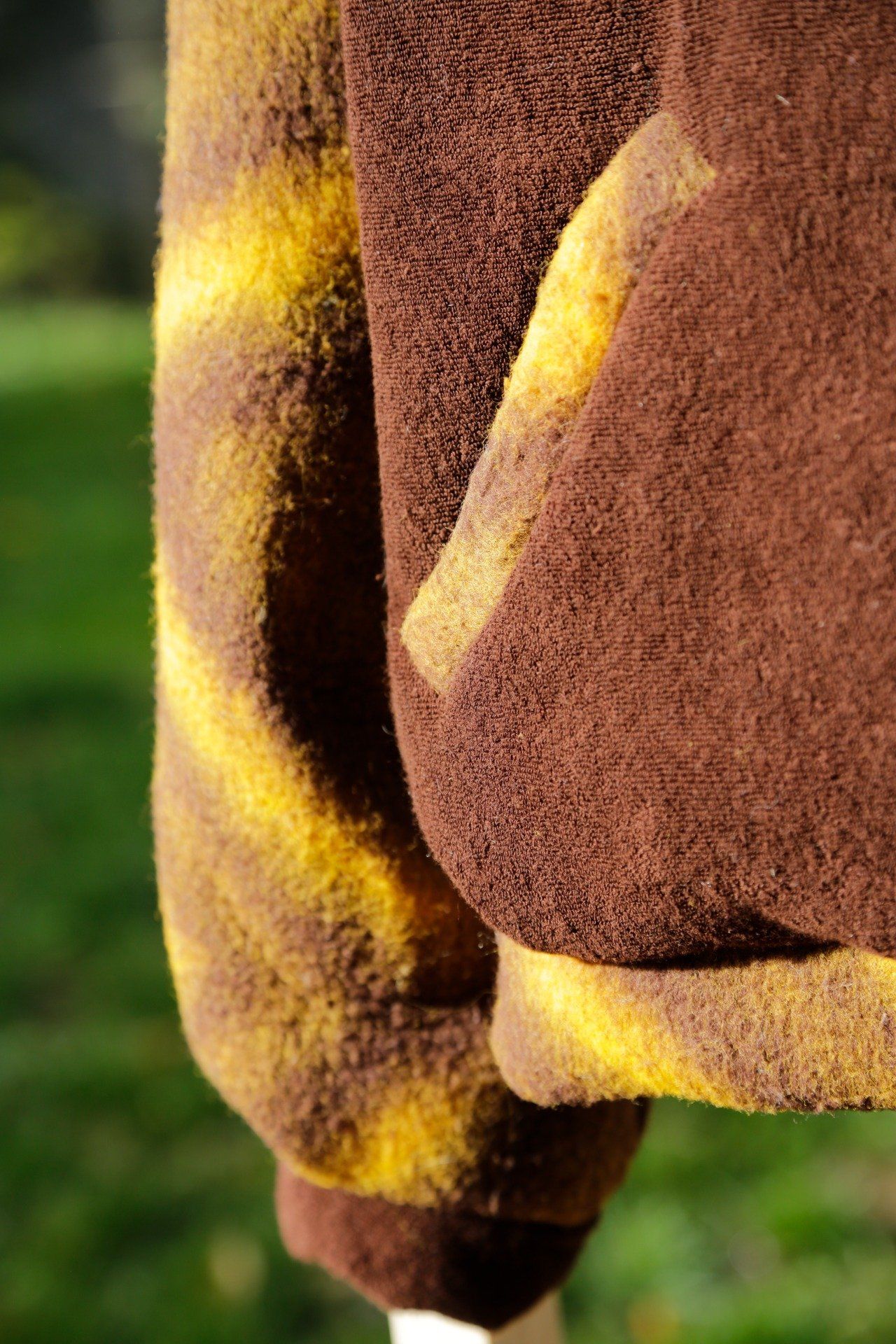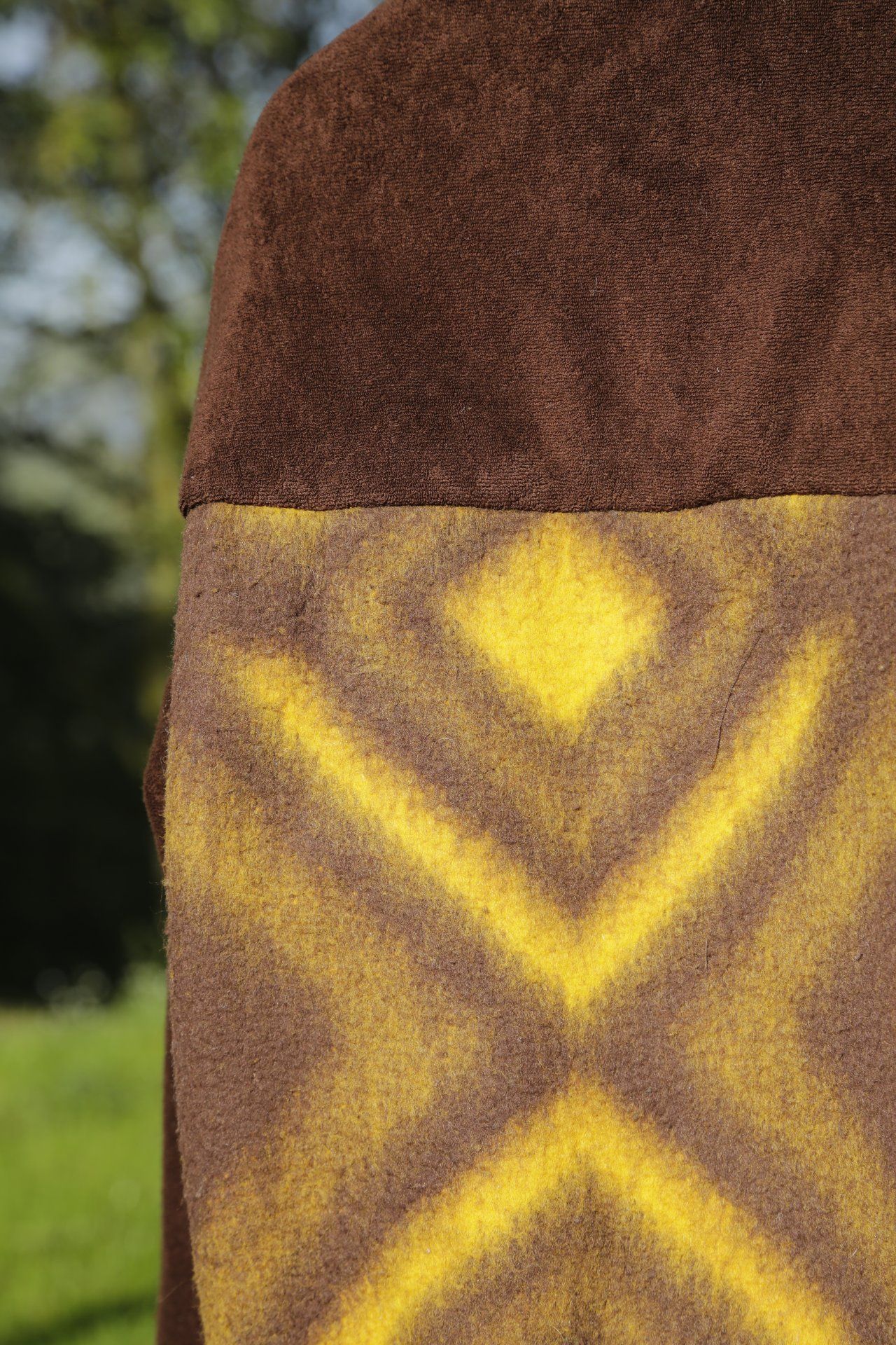 Bomber vintage marron et jaune surcyclé à partir d'une ancienne couverture